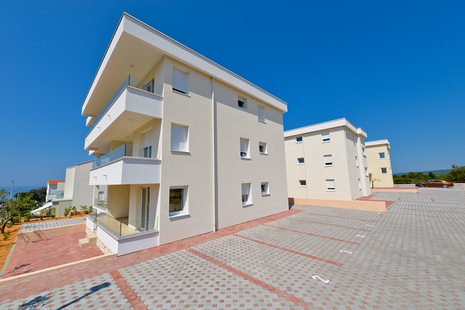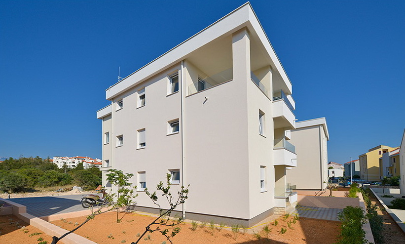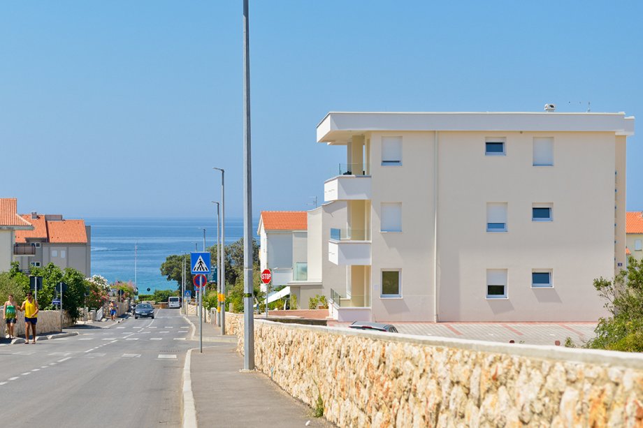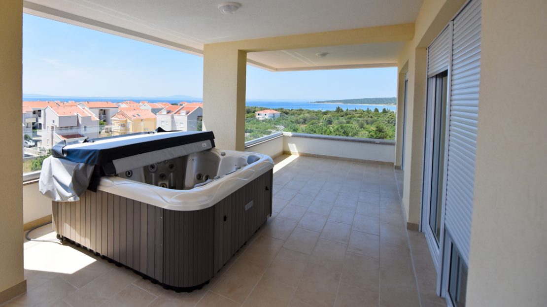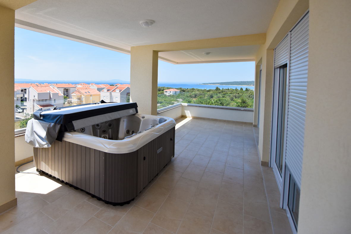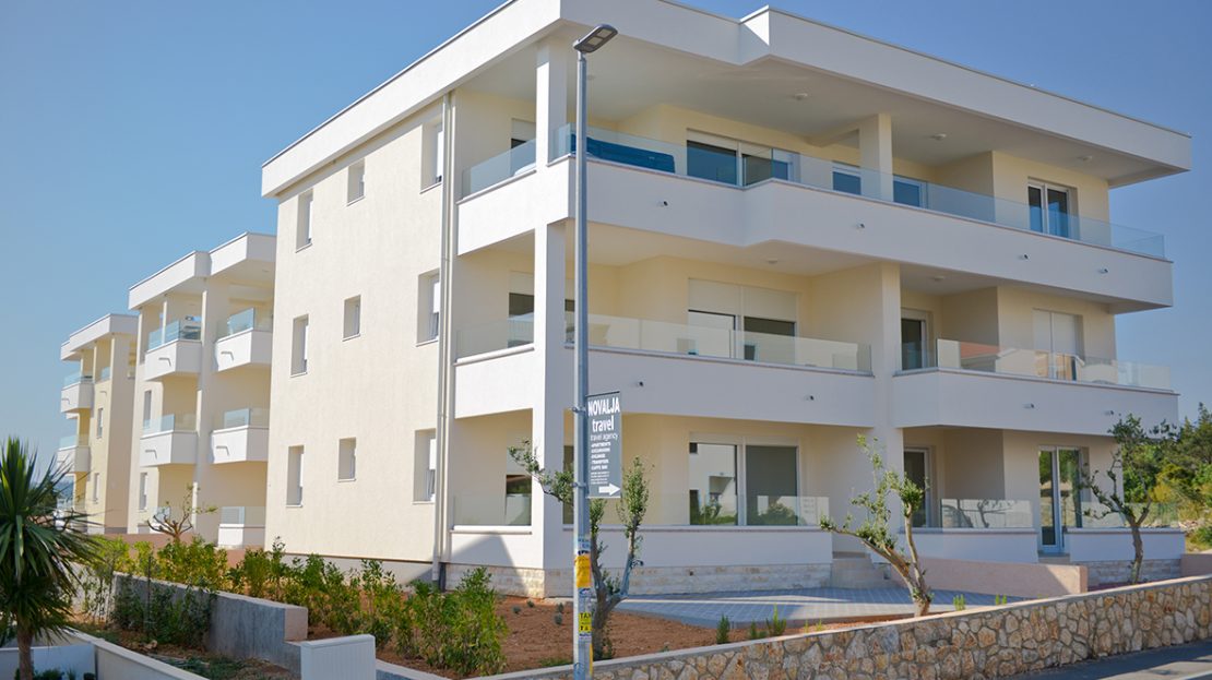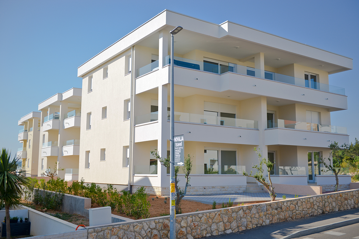 The apartment contains from a hall, a living room with kitchen and dining room, 4 separate bedrooms, a toilette/bathroom + a separate toilete as well as a big terrace or loggia. Apartment has 3 parking places. The apartment is situated in the nearer environment of the city of Novalja, in the new and quiet settlement Gaj- Put Lokvice, aprox. 10 Minutes of walk from the centre of the city. The buildings are aprox. 150 m far from the sea. The apartments are situated very close to most of Novalja beaches, as well as Babe beach. The apartment has a beautiful seaview on Novalja sea and its nearby islands.