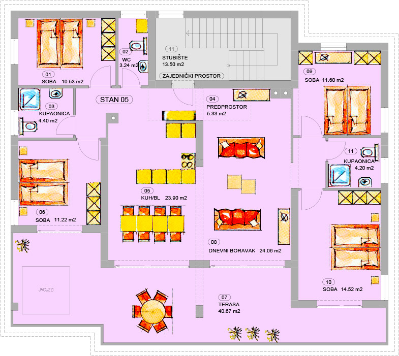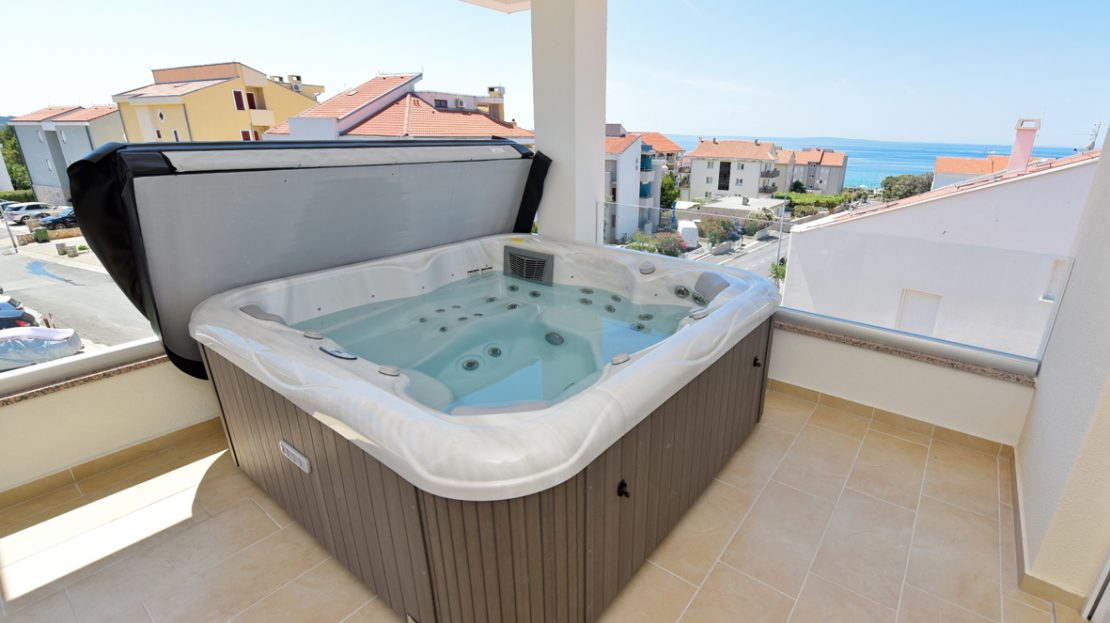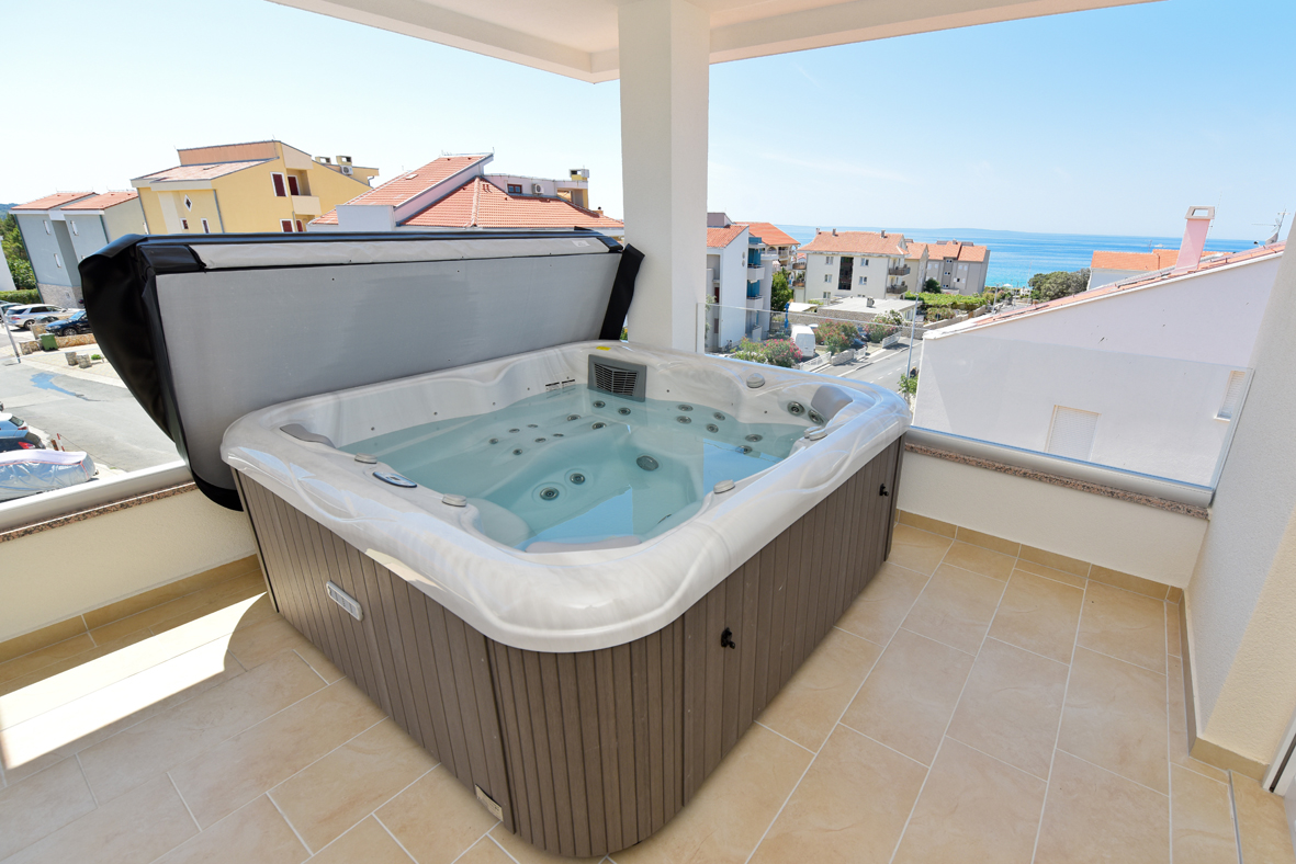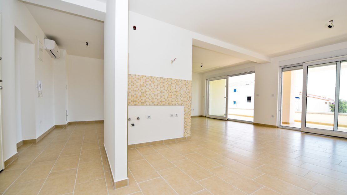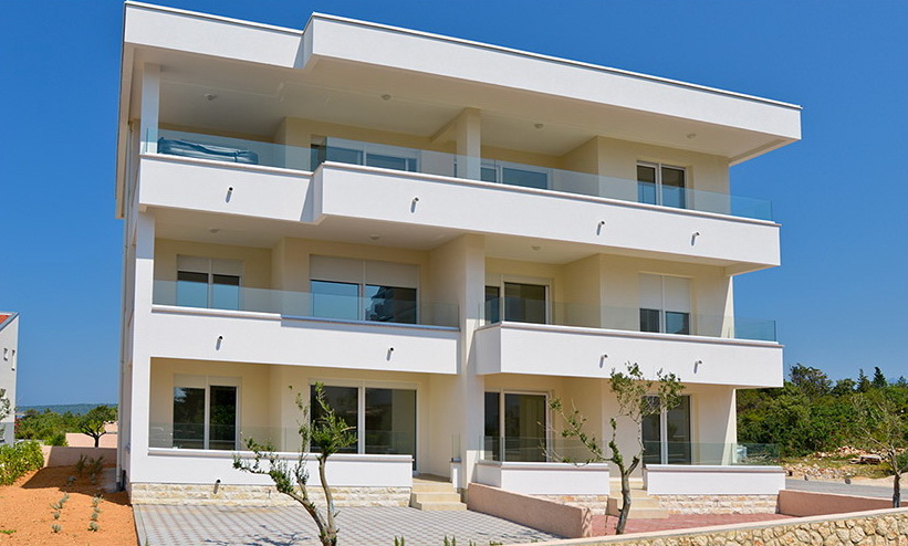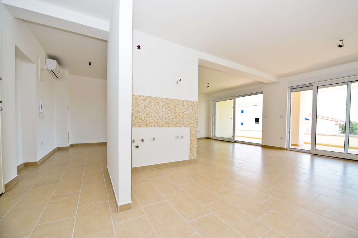 The apartment contains from a hall, a living room with kitchen and dining room, 4 separate bedrooms, a toilette/bathroom + a separate toilete as well as a big terrace or loggia. Apartment has 3 parking places. The apartment is situated in the nearer environment of the city of Novalja, in the new and quiet settlement Gaj- Put Lokvice, aprox. 10 Minutes of walk from the centre of the city. The buildings are aprox. 150 m far from the sea. The apartments are situated very close to most of Novalja beaches, as well as Babe beach. The apartment has a beautiful seaview on Novalja sea and its nearby islands.