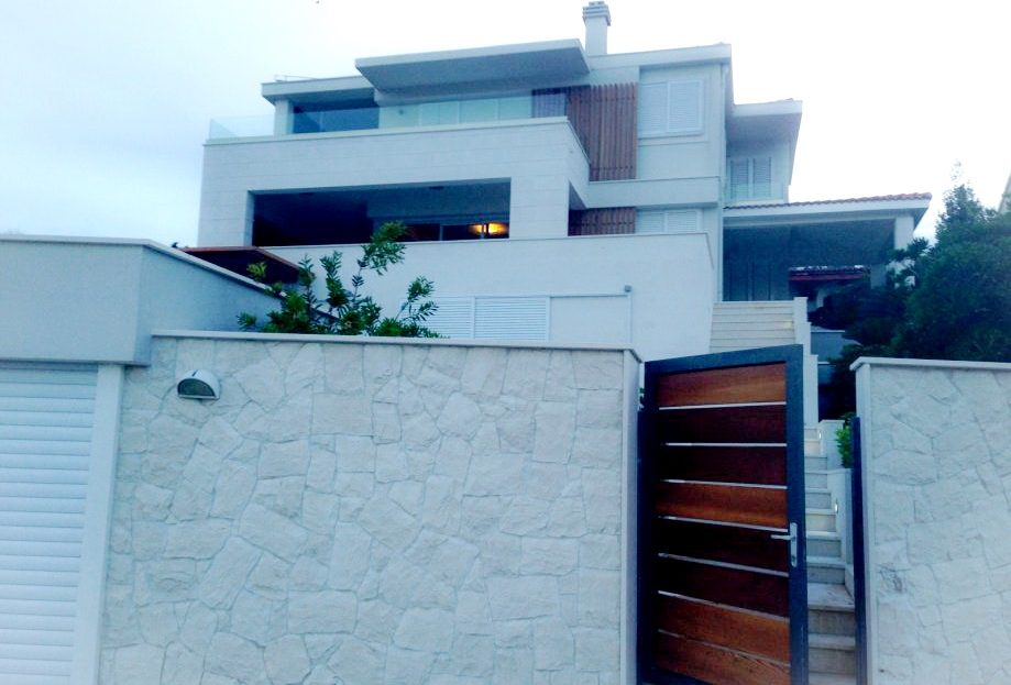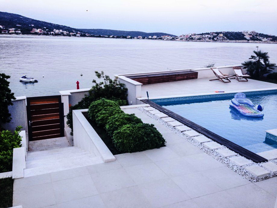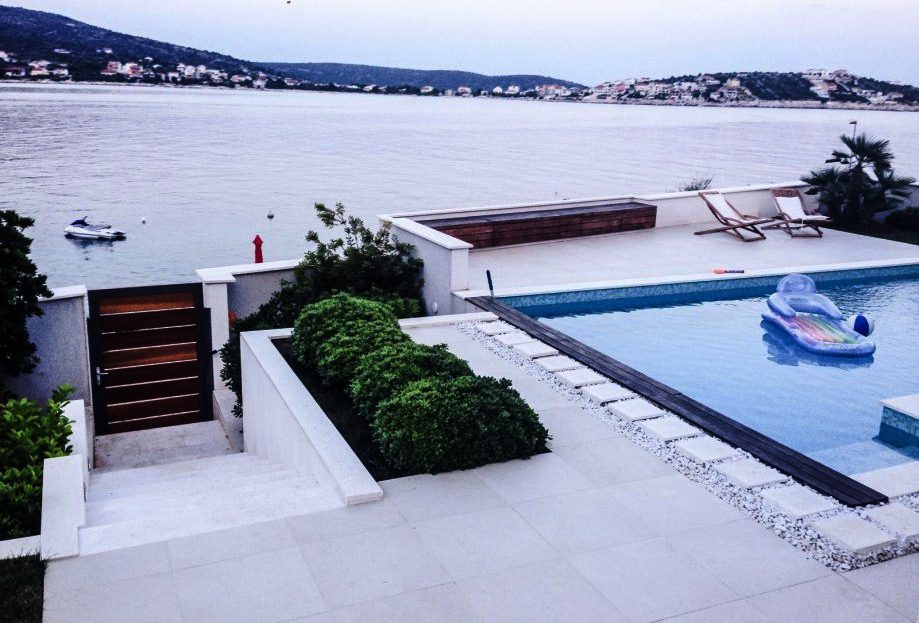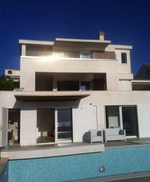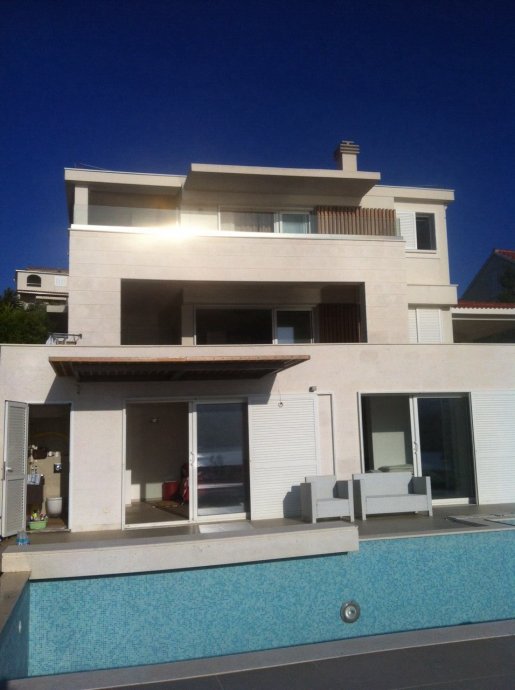 Beautiful charming luxury Villa with swimming pool, one of the kind, seafront (less then 50 feet from the water), private beach. Villa is located in Kanica Bay (Ostricka Luka), last house in the Bay so privacy is a big plus. It is located 45 min drive from Split, 25 minutes drive from Split Airport “Resnik”. Villa was build 2 years ago, luxury equipped inside and outside. There is a private road which is brining you to the villa and private 40m2 garage. Villa is surrounded with stone walls. In a front of the villa there is a swimming pool 8x4m, beautifully done horticultural project with palm and automated irrigation. There is Indoor and outdoor fireplace. On the Lower floor of the villa where the pool is located, there are two apartments with ocean view. Both of those are luxury equipped with mini kitchen and bathroom. In the front of the house there is a huge beautiful terrace with “one of the kind” ocean view. On the first floor of the villa there is oversized modern kitchen, living room with real modern working indoor fire place, office room and bathroom. Rooms are on the 2nd floor, master bedroom with private balcony. There are two other rooms on the same level and each of those has a private bathroom. Villa is air completely air conditioned with latest modern devices. For any other questions feel free to contact as.